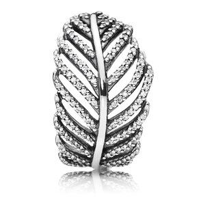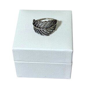This feather ring is made from sterling silver and has a stunning cut-out feather design encircling it. Stunning clear cubic zirconia adorn the outline of the feather adding sparkle to your look! Wear this ring with the Light As A Feather necklace, earrings and charm for the complete look.