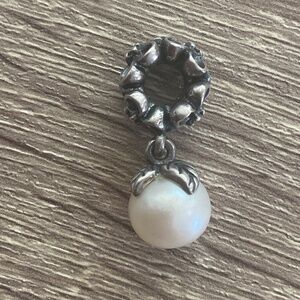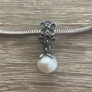 Pandora Forever Bloom Dangle White Pearl Sterling Silver W/ Black Zirconia Gems