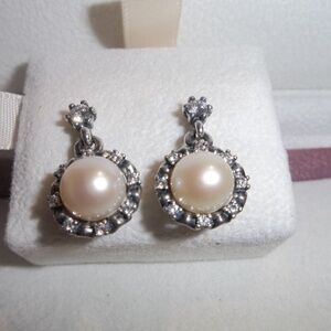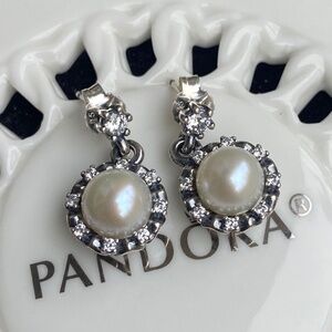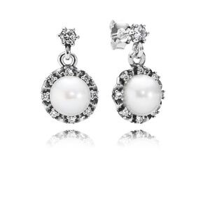 Pandora Freshwater Pearl drop Swarovski Everlasting Grace Earrings White Pearl
