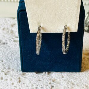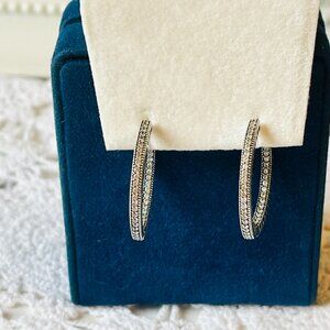Pandora Large Pave Hoops Sterling Silver Sparkle and Hearts, in excellent condition!