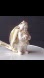 The ornament is made of white porcelain and features Santa Claus with a fabric sack.