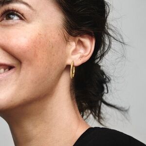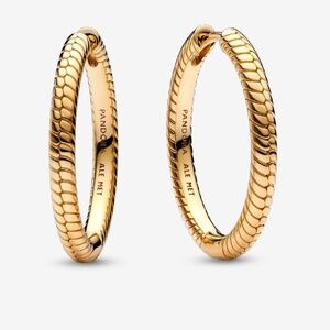 Create an instantly iconic look with the Pandora Moments Charm Hoop Earrings. These 14k gold-plated earrings feature Pandora's famous snake chain pattern. Each hoop is the same size as a small Pandora O Pendant, meaning they can hold up to three charms, dangles or pendants (just be careful not to overload them, so they don't weigh down your ears). Sleek on their own or personalized when paired with your favourite charms, these hoops are a style win.