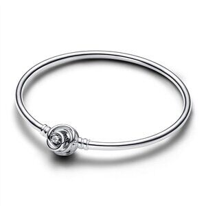 New with box Pandora limited edition Moments Encircled Rose Clasp Bangle in silver. Bracelet size 8.3 inches which is recommended for a wrist size of 7.5 - 7.9 inches on the Pandora website.