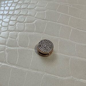 Elegant rose gold charm adorned with sparkling crystals. Perfect for adding a touch of glamour to any bracelet.