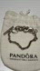 Elegant silver chain bracelet by Pandora. Features a toggle clasp and interlocking design. Pre-owned.