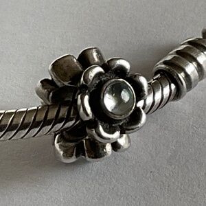 Elegant silver charm with intricate design. Perfect for adding a touch of sophistication to your bracelet.