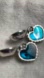 Elegant silver heart-shaped blue charms. Features 'Mother' and 'Son' /You and Me engravings. Perfect for meaningful connections.