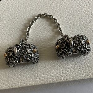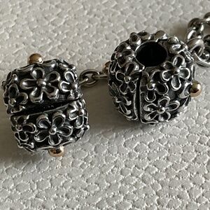 Pandora Silver and Gold Floral Charm Bracelet