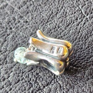 An authentic Pandora retired sterling silver Tulip charm with pale aquamarine dangle - 790248AQ
