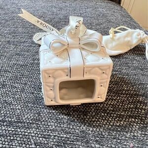 Elegant white gift box ornament by Pandora. Perfect for holiday decor.