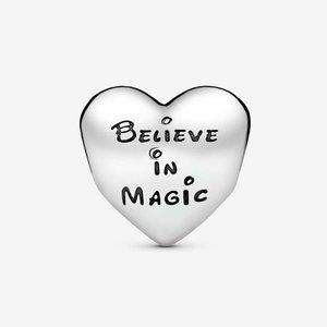 Super cute disney charm for pandora bracelets!! on one side is the super cute image of everyones favorite mice smooching and on the other is the phrase "believe in magic"! Fits most pandora bracelets! I posted two proof photos I took my self and also included product pictures to really showcase this charming charm!