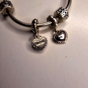 Pandora barrel clasp snake chain braclet 2 stoppers and my special sister charms
