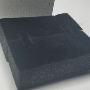 White exterior with black velvet interior. PANDORA is in silver on interior lid and white embossed on top of exterior lid. Foam is slotted for ring, necklace and earrings.
