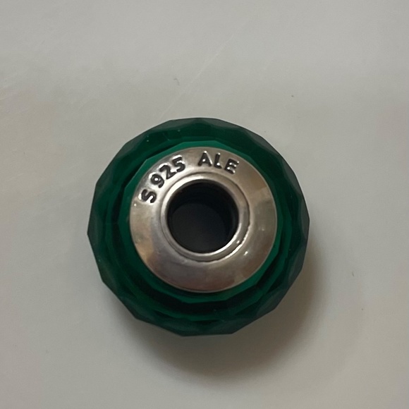 I have two green faceted murano beads from Pandora. They are 925 silver and an emerald green colour.