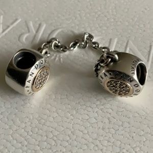 Pandora logo two tone 14k gold and silver safety chain