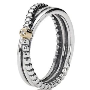 A band of three connected rings, one beaded ring with Diamond crown framed in 14k gold. Excellent condition, size 52