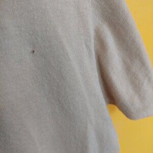A beige t-shirt featuring a dark brown print of Pan, the Faunus god, playing the pan flute. It's in great condition, with the exception of a small hole on the back.