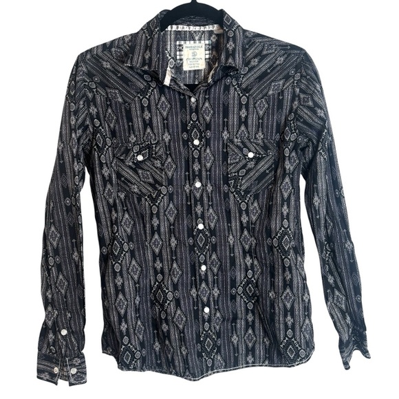 Panhandle Rough Stock Black and White Patterned Button Down Shirt Size Small