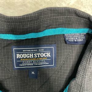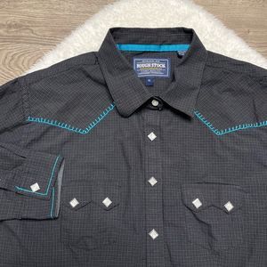 Panhandle Rough Stock Mens Shirt XL Pearl Snap Western Grey Teal Blue Stitch
