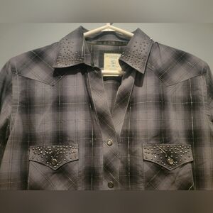 Panhandle Rough Stock V neck Western Shirt Size Small Pit to Pit: 19" Length: 25.5" 99% Cotton 1% Lurex