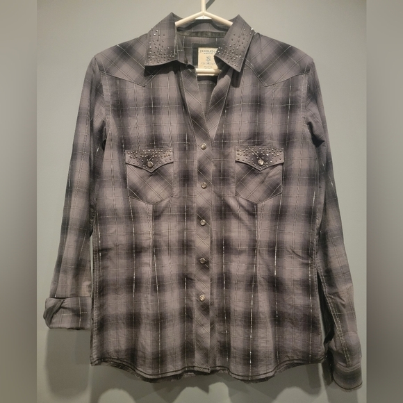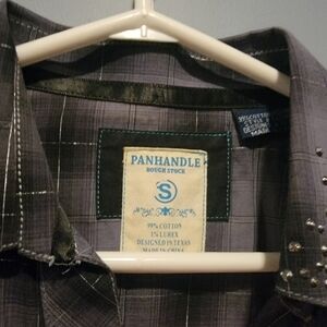 Panhandle Rough Stock V neck Western Shirt Size Small Pit to Pit: 19" Length: 25.5" 99% Cotton 1% Lurex