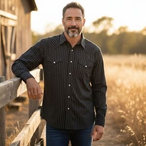 Panhandle Slim Black With Silver Threads And Pearl Snap Buttons Shirt Size XL