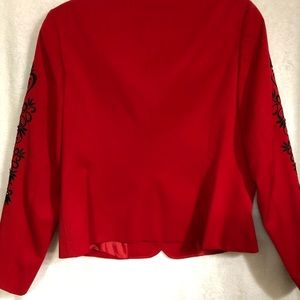 This brand was popular with equestrian show riders and contestants in rodeo pageants. I wore this once a year to VIP events during the rodeo in Edmonton. Fits smaller than 14; more like a 10/12. Nice stitching and metal accents. Metal buttons have left a ring from being buttoned. Non smoking home.