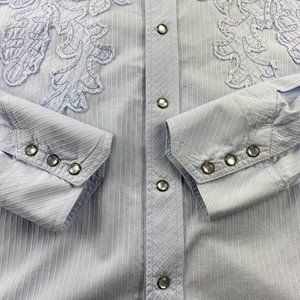 Panhandle Slim Western Shirt Men Extra Large XL Blue Button Up Pearl Snap Cowboy