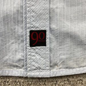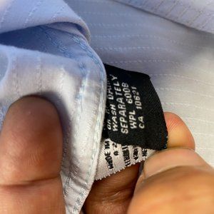 Excellent used condition. Gentle wear. There is a tiny stain at front bottom of shirt as pictured.