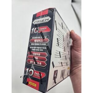 A sealed 2024 Panini Prizm K League Soccer trading card booster box. Each box contains 10 packs, with 10 cards per pack, offering a chance at autographs and parallels. This collection is ideal for soccer card enthusiasts and collectors seeking to expand their K League memorabilia.