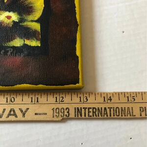 Cute hand painted pansy picture on canvas. Hook on the back so you can hang it on the wall. Signed by artist Lucie Riley. Unknown age of artwork. Roughly 9.5” x 13”. Very good condition- no issues to note.