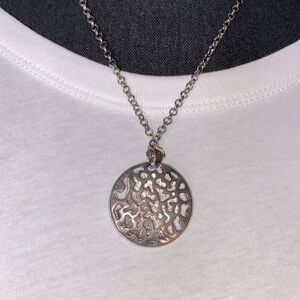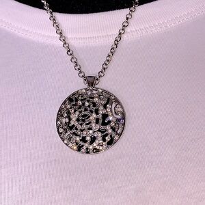 Panther face silver tone pendant w/ black enamel necklace 🐆 & rhinestones.