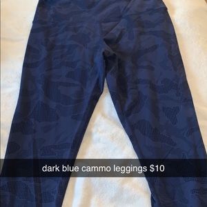 Blue camo leggings- really good quality for working out and stretchy and comfy! size m