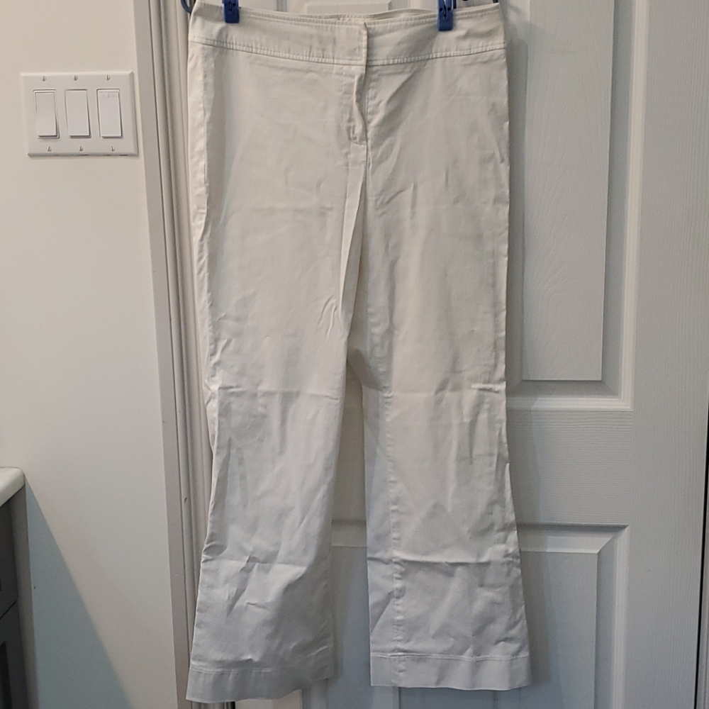 White dress pants. Flat front and back, no pockets, no belt loops. No stains. 28" inseam