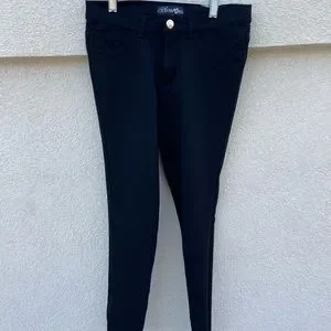 Black pants with zipper and button. Low-rise