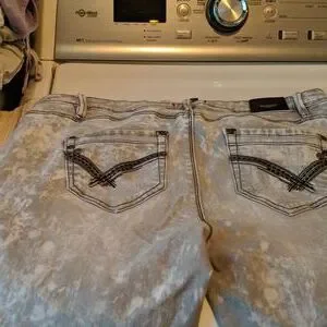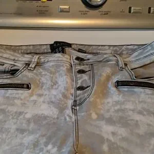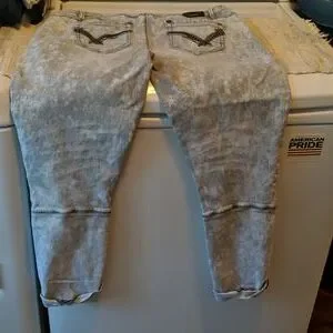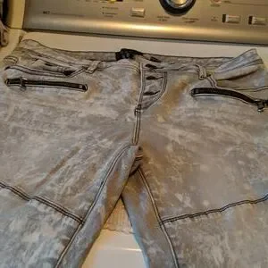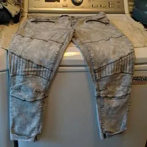 stretch cropped button up pants. light gray with darker gray.