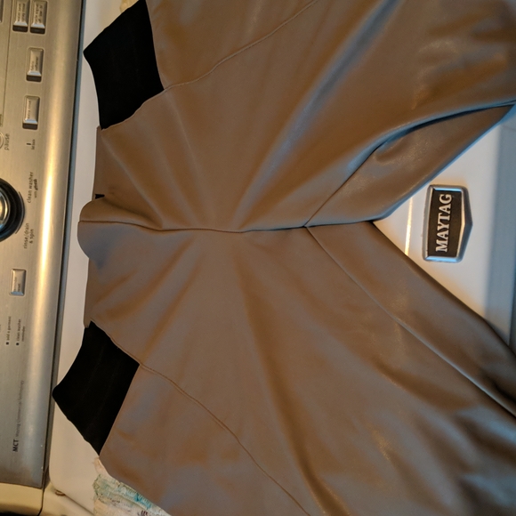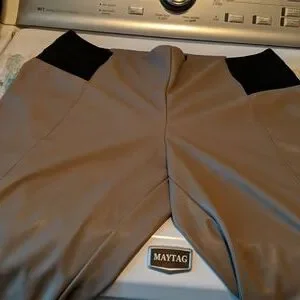 imitation leather pants with 2 large elastic sides on the waist. no pockets.