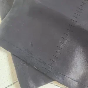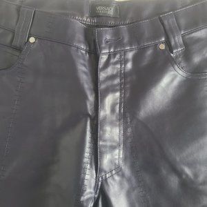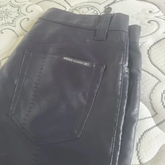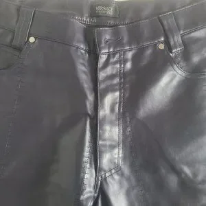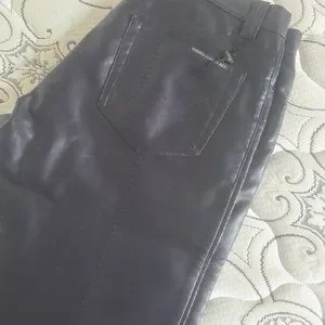 Pleather charcoalish purplish colour. Size 36 men's. Stylish. Slight distress at pant bottom. See pic.