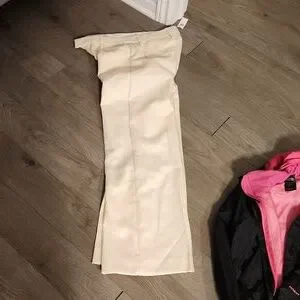while leg pants, cream color