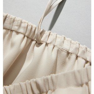 Women pants with elastic waiIt, contains 30% triacetate fabric imported from Japan, triacetate fabric is artificial fiber fabric, it can be used for the production and processing of high-grade dress, cheongsam, wedding dress and so on!