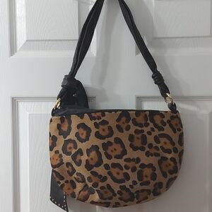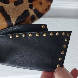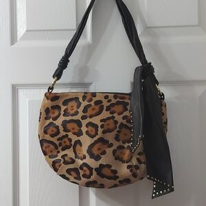 Paolo Masi Leather/Calf Hair Hobo Style Bag with Studded Leather Sash. Animal Print. Inside zippered pockets. Soft leather handles. Excellent like new condition.
