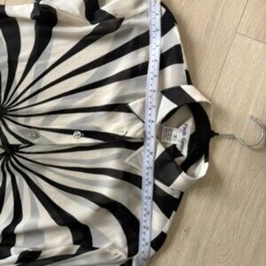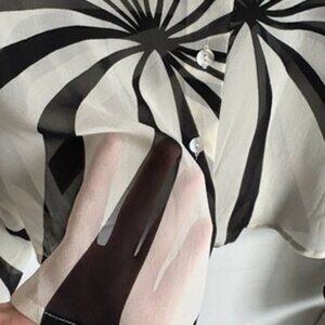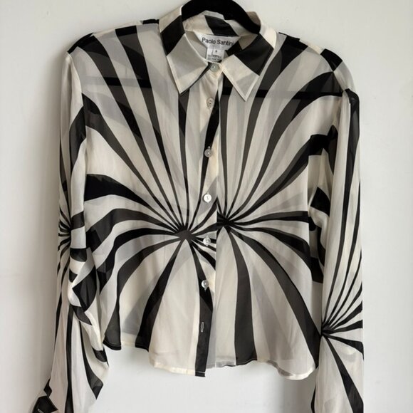 Paolo Santini 100% Silk Blouse Size 8 Black Cream Graphic Sheer Button-Up