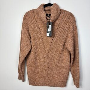Stay warm and stylish with this cozy brown turtleneck sweater. Perfect for any casual outing.