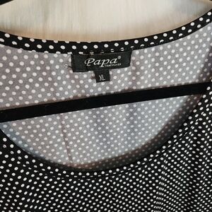 Add a touch of refinement to your wardrobe with this black sleeveless top from Vancouver’s own Papa Fashions. Featuring classic polka dots and a unique angled lace detail across the hem, it offers full coverage with a flattering, feminine finish. Known for their high-end pricing, Papa’s pieces rarely come at this kind of value—making this a rare chance to own boutique quality for a fraction of the cost.