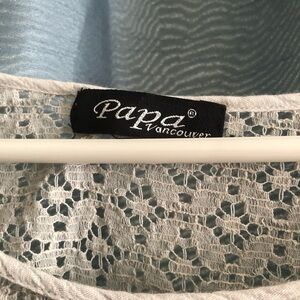Papa Vancouver 100% cotton sleeveless Lacey top for those summer adventures! No size but pit to pit is 21/22” the long slit at side is an added feature