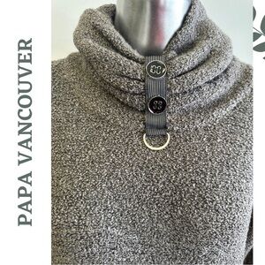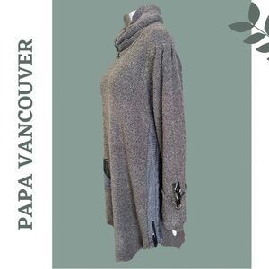 Papa Vancouver 🇨🇦 Grey Boucle Knit Pullover Cowl Neck Sweater Adjustable Size XL