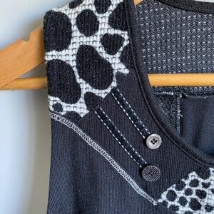 Papa Vancouver Women's Black White Sleeveless A-Line Poly Knit Midi Dress Small