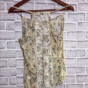 Papaya Cream Floral sheer spaghetti strap Top, back lace size small