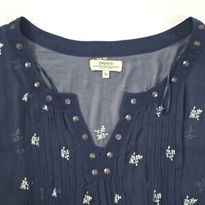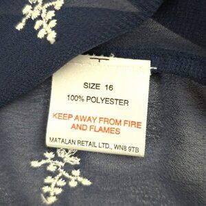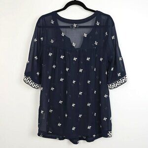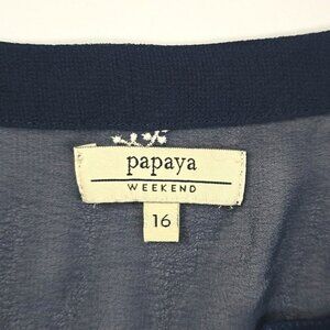 Papaya Weekend Women's Navy Semi Sheer Embroider 3/4 Length Sleeves Blouse Sz 16