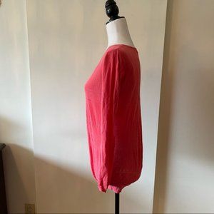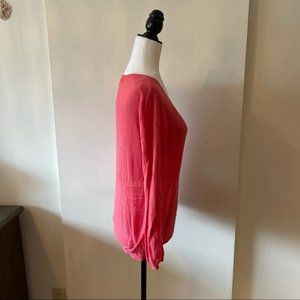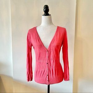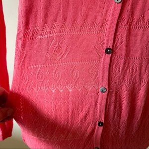 Papaya coral pink pointelle geometric knit cardigan v neck Aztec